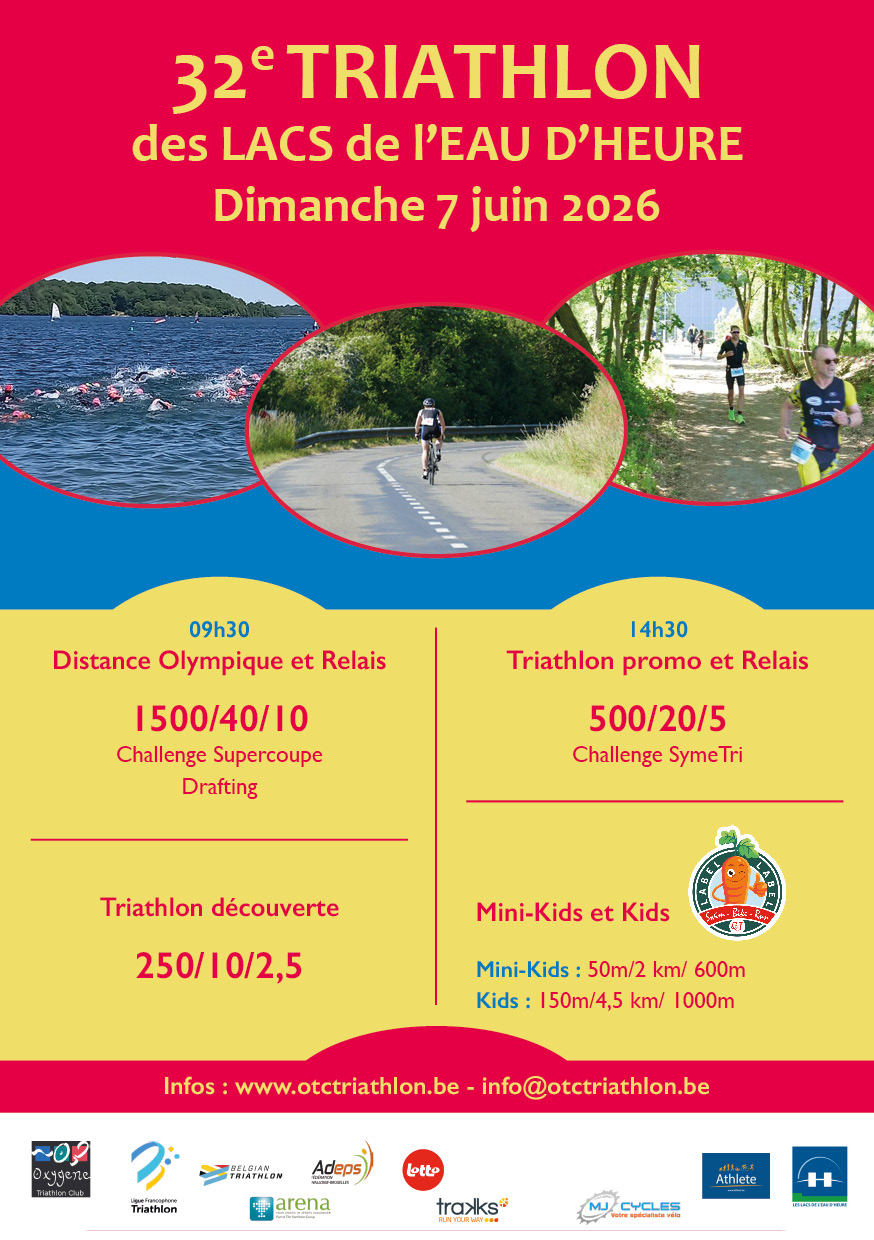 Le triathlon des des LACS de l’EAU D’HEURES est organisé par l’OTC. Le DO et le Promo peuvent être faite en relais, parcours accessible par tous ;-)